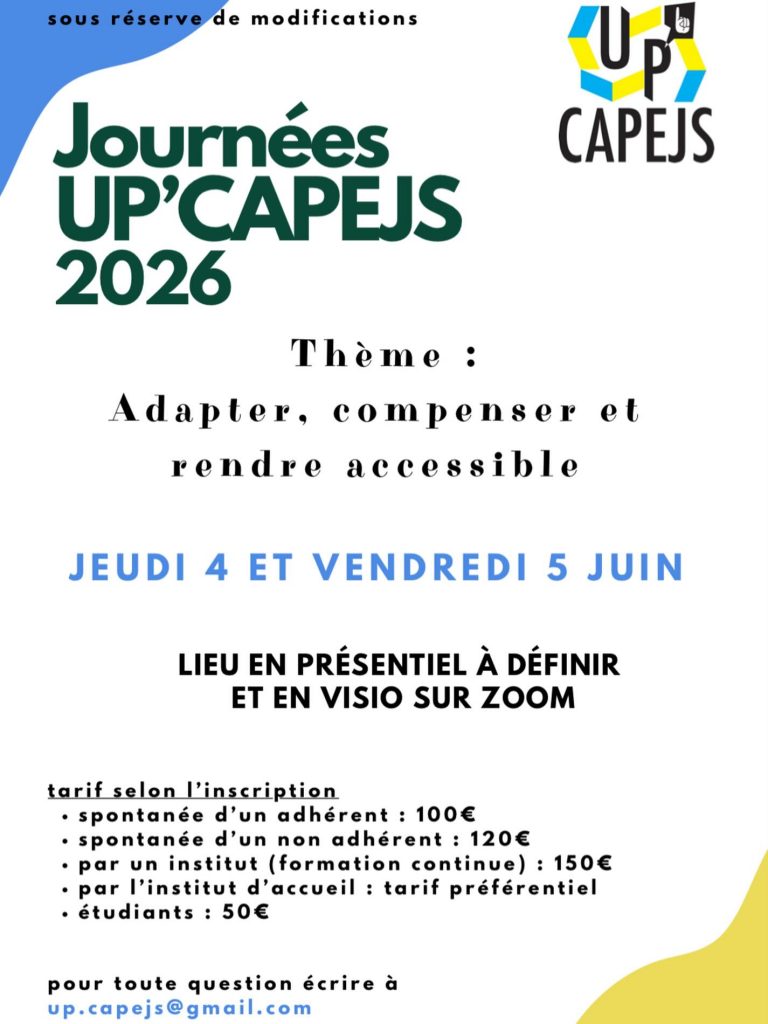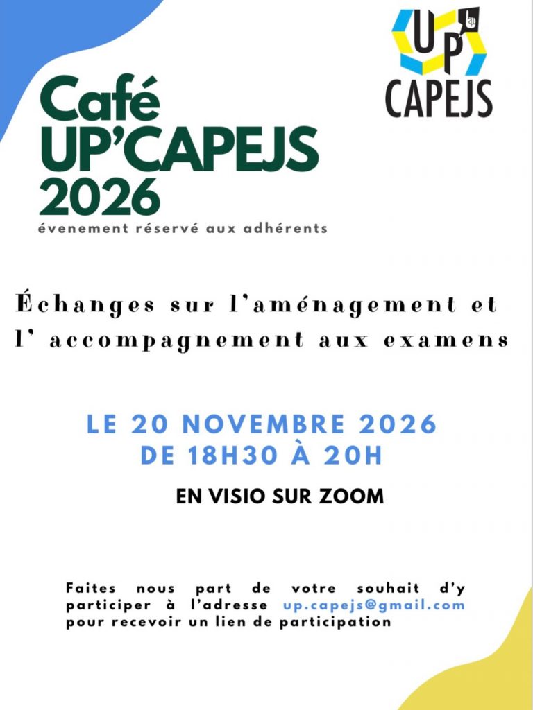 Échanges sur l'aménagement et l'accompagnement aux examens Le 20 novembre 2025 de 18h30 à 20h En visio sur ZoomInscription via l'adresse mail up.capejs@gmail.com … [Lire plus...]